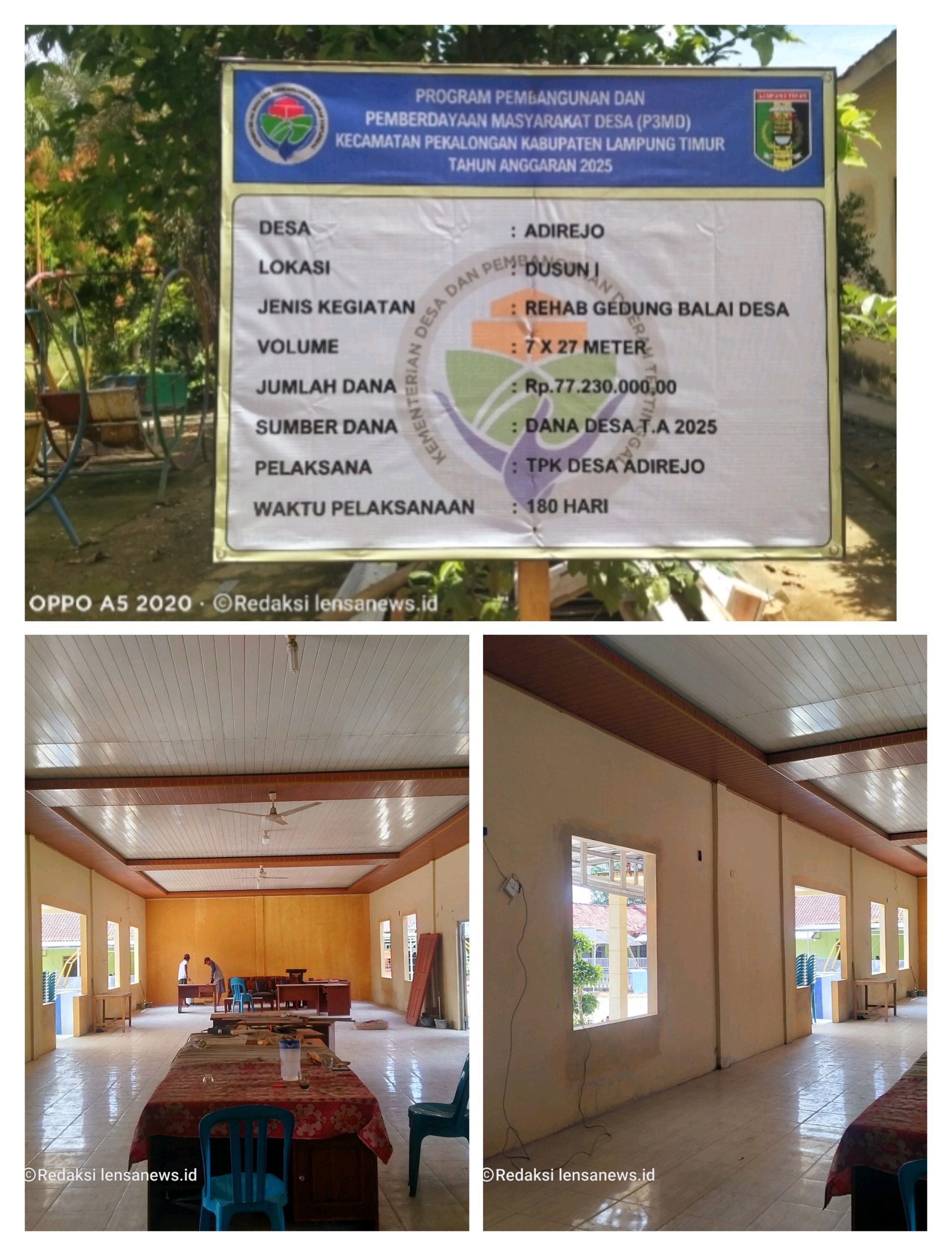 ” Terima kasih atas kunjungan dan konfirmasinya. Memang bener rebab gedung Balai Desa Adirejo sebelum sudah melaui proses pembahasan Musyawarah Perencanaan Pembangunan Desa (Musrenbangdesa) musyawarah tahunan yang melibatkan seluruh elemen masyarakat desa untuk membahas dan menyepakati rencana pembangunan desa,” ucap Andi Joko Susanto.