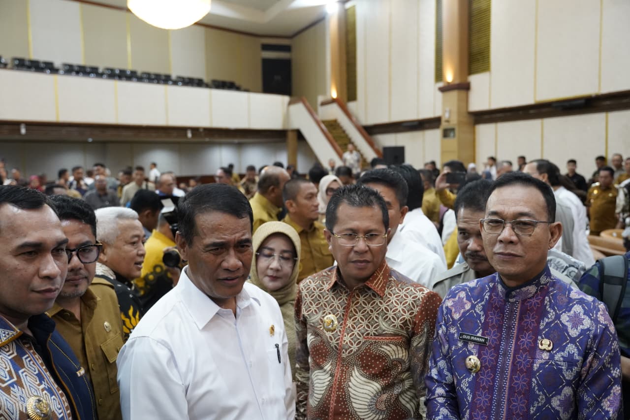 Bupati Tapanuli Selatan H. Gus Irawan Pasaribu menghadiri Rapat Koordinasi (Rakor) Mitigasi Kekeringan Lahan Pertanian terkait prediksi kekeringan ekstrem Tahun 2026 yang diselenggarakan Kementerian Pertanian Republik Indonesia di Auditorium Gedung F, Kantor Pusat Kementerian Pertanian RI, Jalan Harsono RM No. 3, Ragunan, Pasar Minggu, Jakarta Selatan, Senin (20/4/2026).