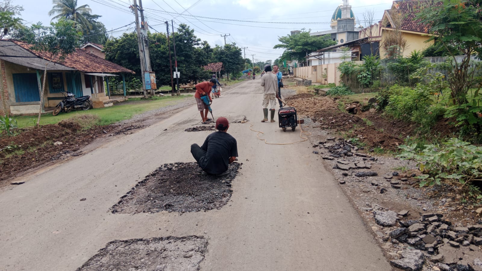 Jalan lingkungan yang baru selesaiJalan diperbaiki di Dusun 05, Desa Bumi Jawa, Kecamatan Batanghari Nuban, Kabupaten Lampung Timur, kembali mengalami kerusakan. Retak dan pengelupasan pada badan jalan diduga kuat disebabkan oleh kendaraan truk jenis fuso dan tronton yang mengangkut singkong serta material bangunan dengan muatan melebihi batas tonase.