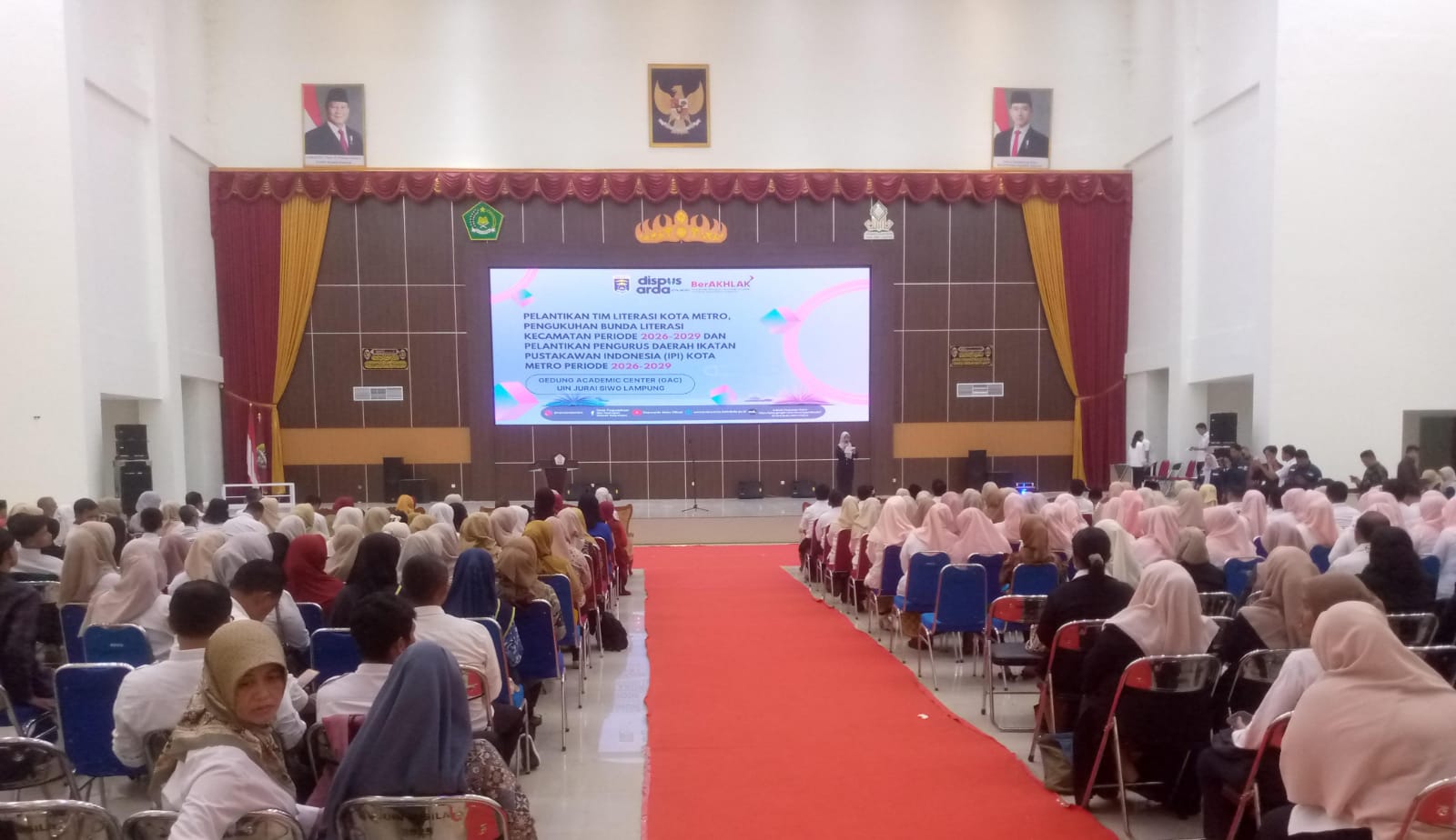Dinas Perpustakaan dan Kearsipan Daerah (Dispusarda) Kota Metro , menggelar Kegiatan Pelantikan Tim Literasi Kota Metro, dan Pelantikan Pengurus Daerah Ikatan Pustakawan Indonesia (IPI) Kota Metro Periode 2026-2029, serta Pengukuhan Bunda Literasi Kecamatan Periode 2026-2029, yang berlangsung di Kampus II Gedung Academic Center (GAC) UIN Jurai Siwo Lampung. Jum’at (26/02/2026)
