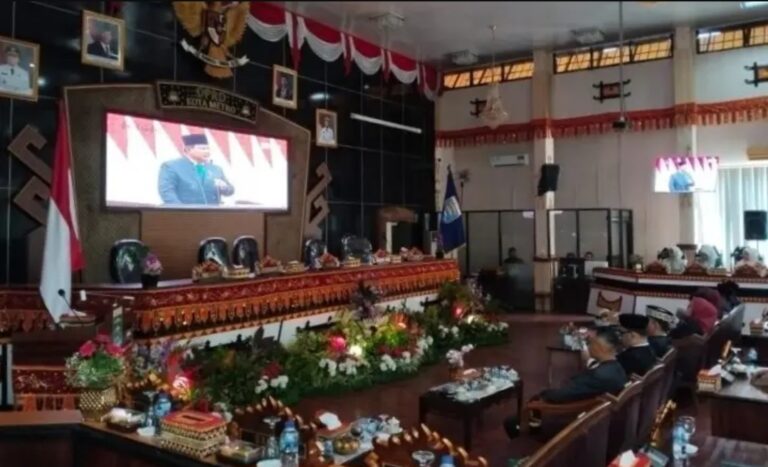 DPRD Kota Metro bersama Pemerintah Daerah Kota Metro menggelar Rapat Paripurna di Gedung Paripurna DPRD Kota Metro, Jumat (15/8/2025), untuk mengikuti Sidang Tahunan MPR RI secara daring.