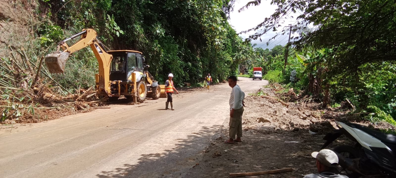 ” Kami langsung menerjunkan alat berat untuk membersihkan material tanah yang menutupi jalan dan insyaallah secepatnya bisa di lalui kendaraan dengan normal,” terang Hamdan.
