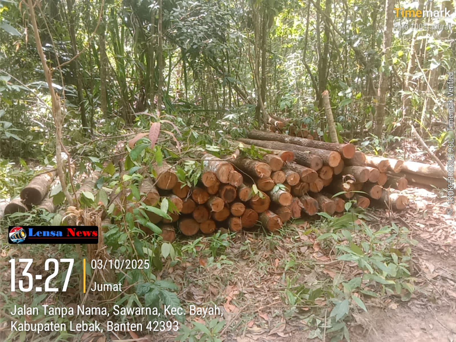 Hal ini di buktikan dengan hasil penelusuran awak media pada Jumat, 03 Oktober 2025, ditemukan puluhan gelondongan kayu hasil penebangan di beberapa titik kawasan perhutani RPH Bayah Selatan BKPH Bayah, diduga kuat untuk kebutuhan tambang batubara tanpa ijin.