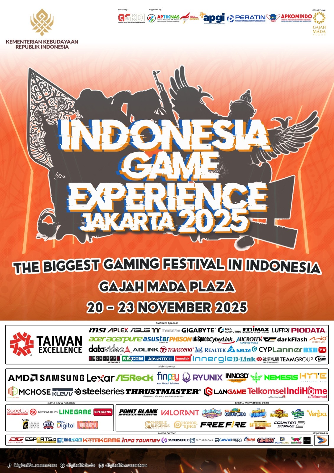 Acara ini merupakan kolaborasi strategis yang diselenggarkan oleh Asosiasi Game dan Konten Digital Indonesia (AGKDI) dan didukung oleh Kementerian Kebudayaan Republik Indonesia, Taiwan Trade Center (TAITRA) Jakarta, termasuk oleh APTIKNAS, APKOMINDO dan PERATIN serta APGI.