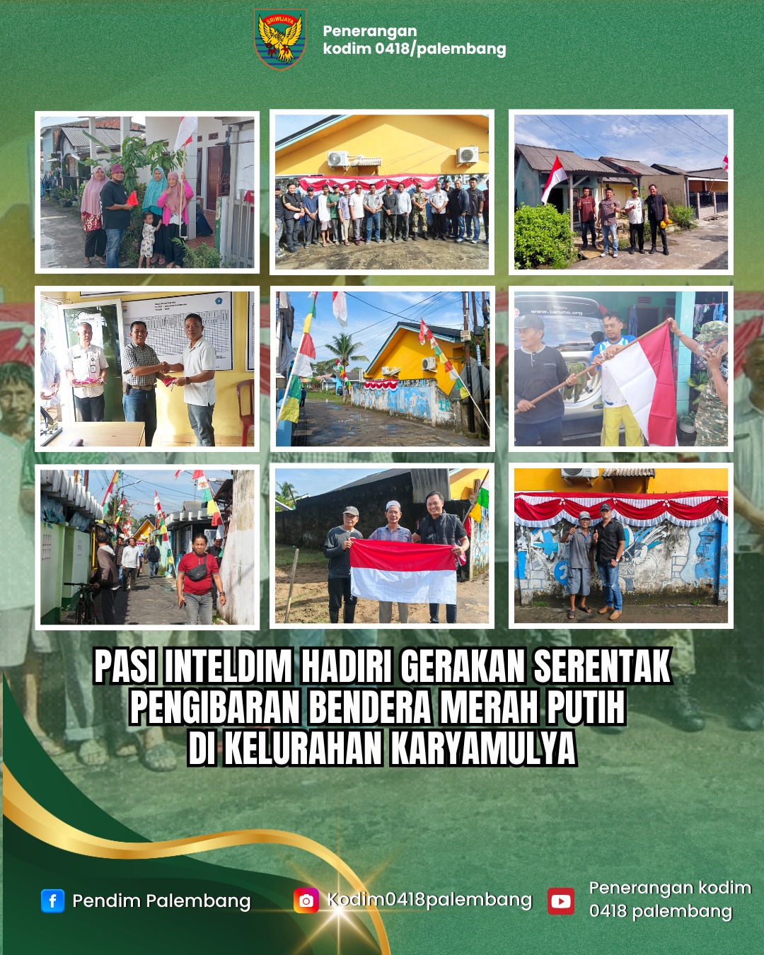Kegiatan ini dimonitor langsung oleh Babinsa Kelurahan Karyamulya sebagai bagian dari program penilaian “Cinta Tanah Air” yang digagas oleh Kodim 0418/Palembang.