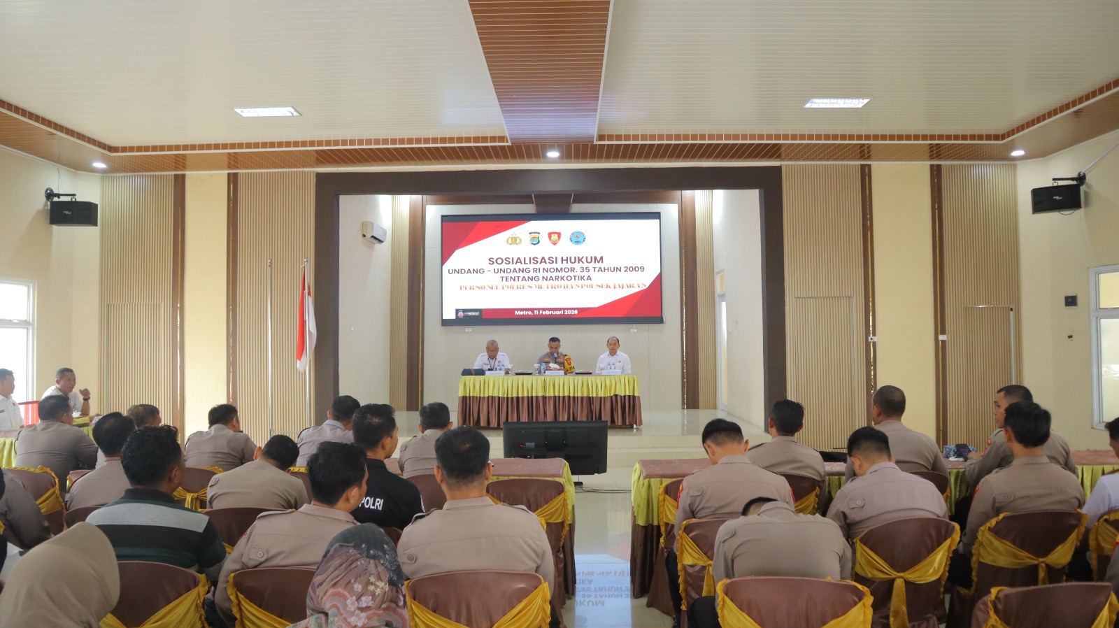 Dalam upaya memperkuat kapasitas sumber daya manusia serta meningkatkan kualitas penegakan hukum di bidang pemberantasan narkotika, Polres Metro menggelar Sosialisasi Hukum Undang-Undang Nomor 35 Tahun 2009 tentang Narkotika. Kegiatan ini dilaksanakan di Aula Sanika Satyawadha Polres Metro dan diikuti oleh personel Polres Metro beserta polsek jajaran. Rabu, (11/02/26).