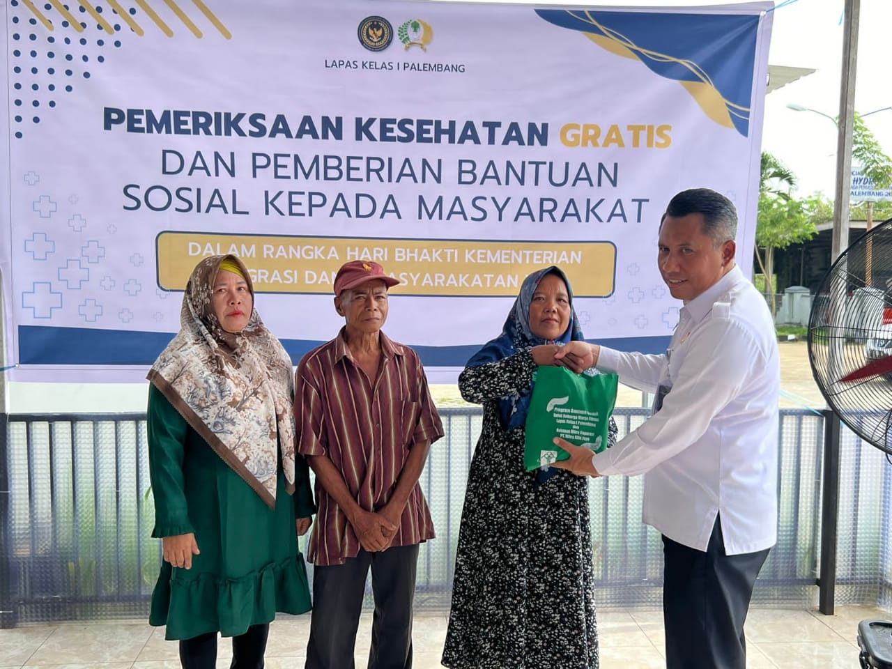 Dalam rangka melaksanakan rangkaian memperingati Hari Bhakti Kementerian Imigrasi dan Pemasyarakatan ke-I, Lembaga Pemasyarakatan (Lapas) Kelas I Palembang menggelar kegiatan bakti sosial berupa pemberian bantuan sosial dan layanan cek kesehatan gratis bagi masyarakat di sekitar lingkungan Lapas Kelas I Palembang, Kamis (13/11).