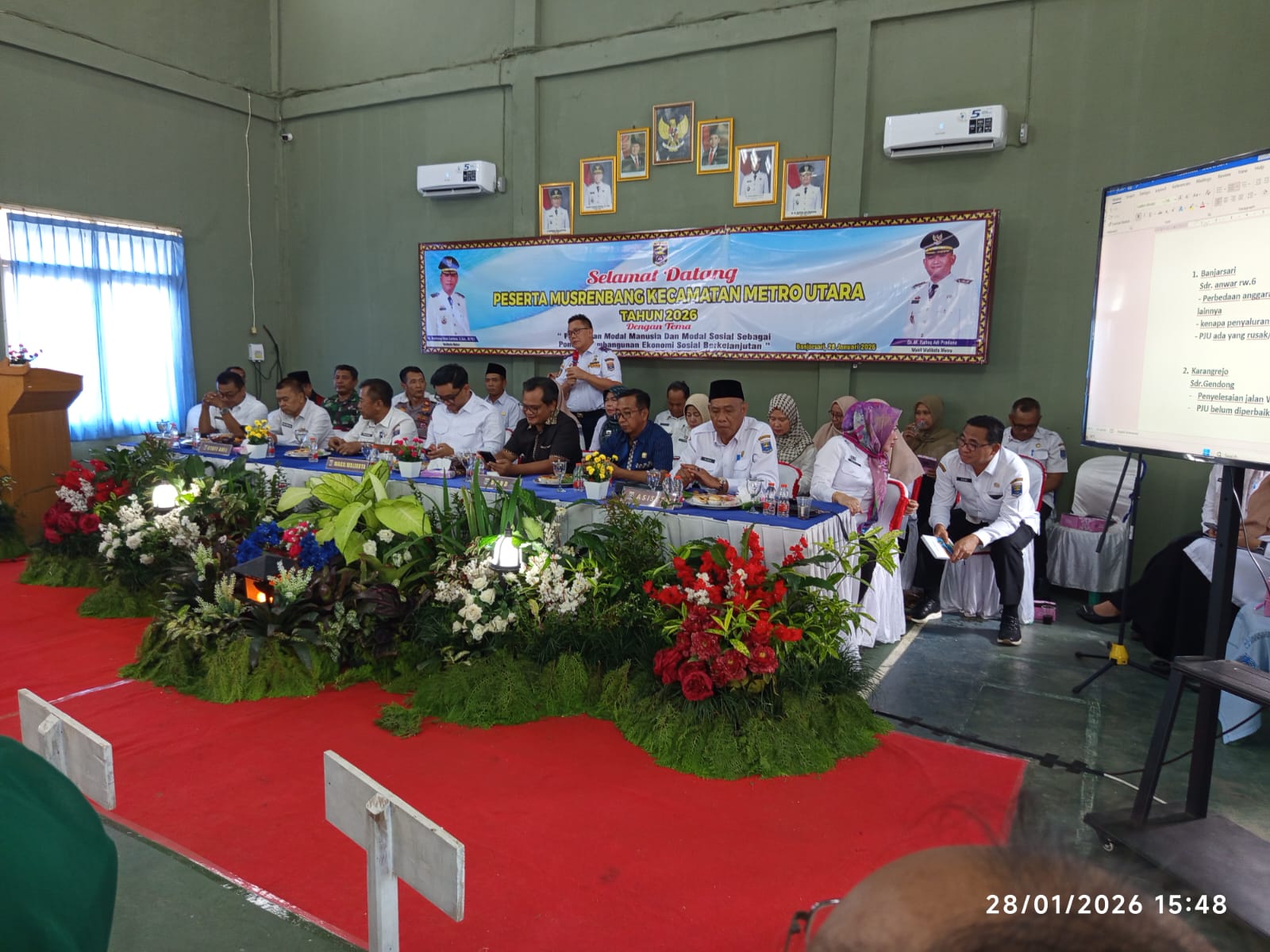 Musrenbang, Musyawarah Perencanaan Pembangunan Tahun 2027 Kecamatan Metro Utara, Dengan Tema ” Penguatan Pembangunan Modal Manusia dan Modal Sosial Sebagai Pondasi Pembangunan Ekonomi Sosial yang Berkelanjutan” yang berlangsung di Aula kecamatan Metro Utara, Rabu (28/01/2026).