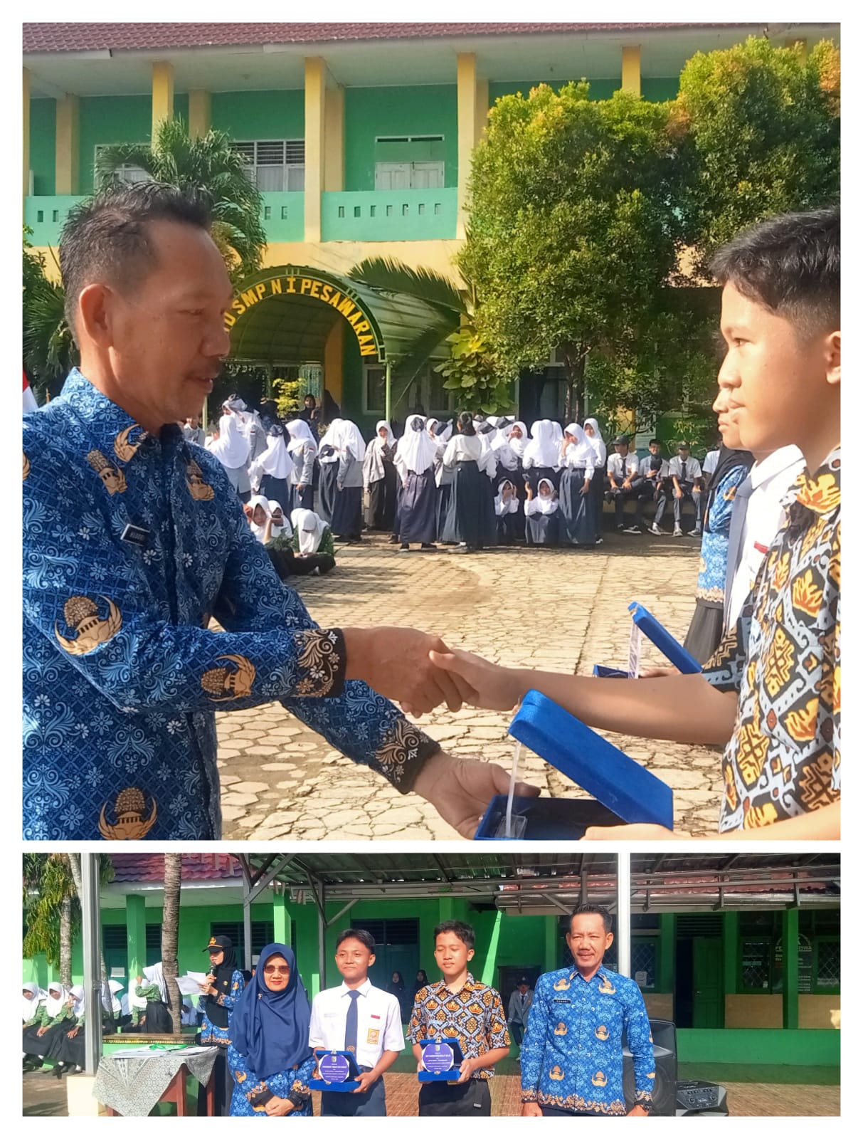 Kepala SMPN 1 Gedong Tataan Lantik Pengurus OSIS dan Beri Penghargaan Siswa Berprestasi