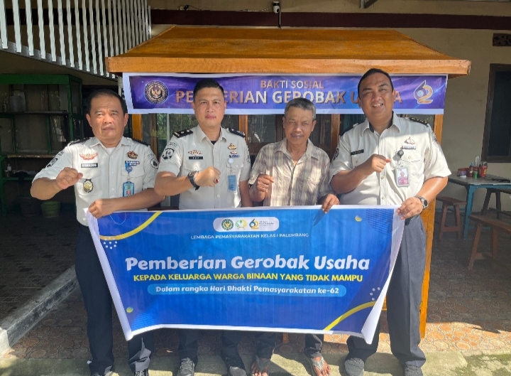 Dalam rangkaian kegiatan peringatan Hari Bakti Pemasyarakatan (HBP) ke-62, Lembaga Pemasyarakatan Kelas I Palembang menunjukkan kepedulian sosial dengan memberikan bantuan gerobak usaha kepada keluarga warga binaan yang kurang mampu. Kegiatan ini merupakan wujud nyata dukungan terhadap peningkatan kesejahteraan keluarga warga binaan di tengah keterbatasan ekonomi.