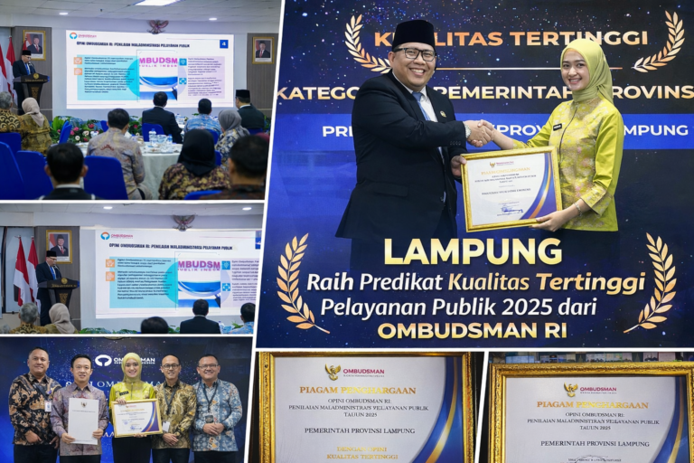 Pemerintah Provinsi Lampung kembali menorehkan prestasi membanggakan di tingkat nasional. Dalam Penilaian Maladministrasi Pelayanan Publik Tahun 2025 yang dilakukan Ombudsman Republik Indonesia, Provinsi Lampung berhasil meraih predikat Kualitas Tertinggi, sekaligus menjadi satu-satunya pemerintah provinsi dari 38 provinsi di Indonesia yang mencapai capaian tersebut.