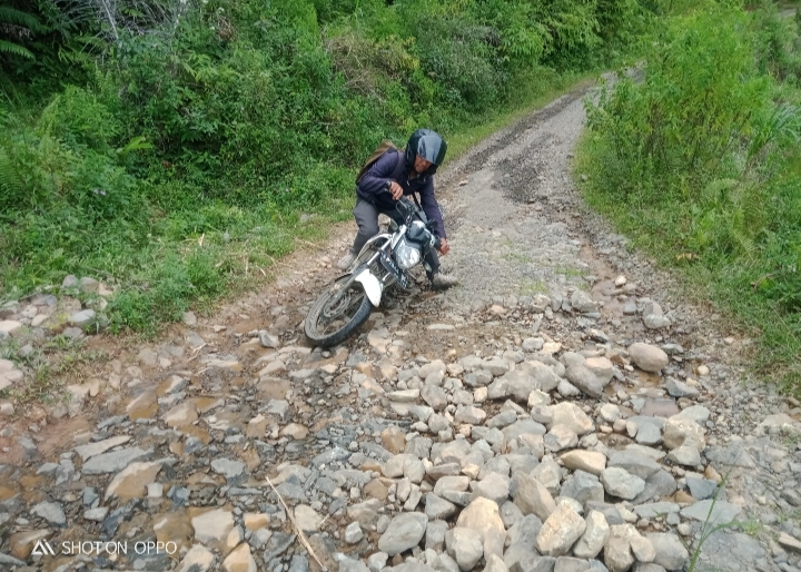 ‎”Wilayah kami ini dataran tinggi dengan kontur jalan menanjak dan menurun curam. Dulu sempat ada pengaspalan dan betonisasi, namun sekarang hancur total. Kalau hujan, jalanan jadi sangat licin karena kerikil dan lumpur,” jelasnya.