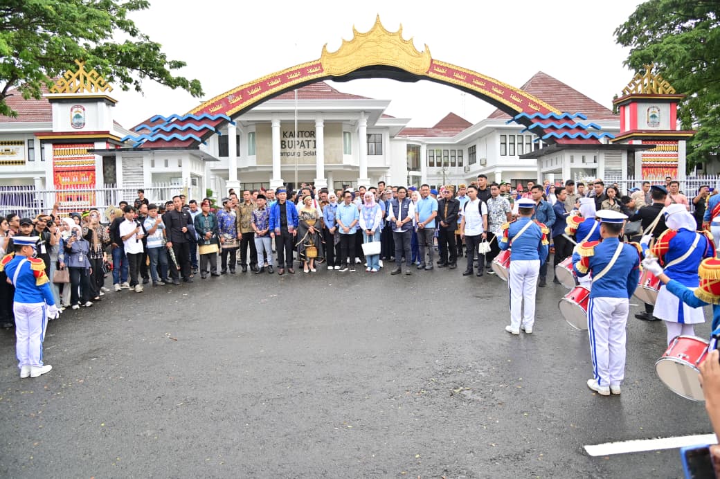 Setiba di Lampung pada pukul 07.00 WIB, rombongan langsung melanjutkan perjalanan menuju Kantor Bupati Lampung Selatan untuk menghadiri agenda budaya dan penyambutan resmi.
