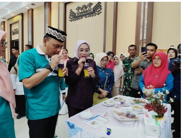 Ria Hartini menyampaikan apresiasinya terhadap kreativitas dan kerja keras kader PKK dalam menyajikan stand yang menarik dan penuh dengan produk-produk lokal. Ia juga ikut mencicipi makanan dan minuman yang disajikan oleh pelaku usaha kecil di setiap stand.