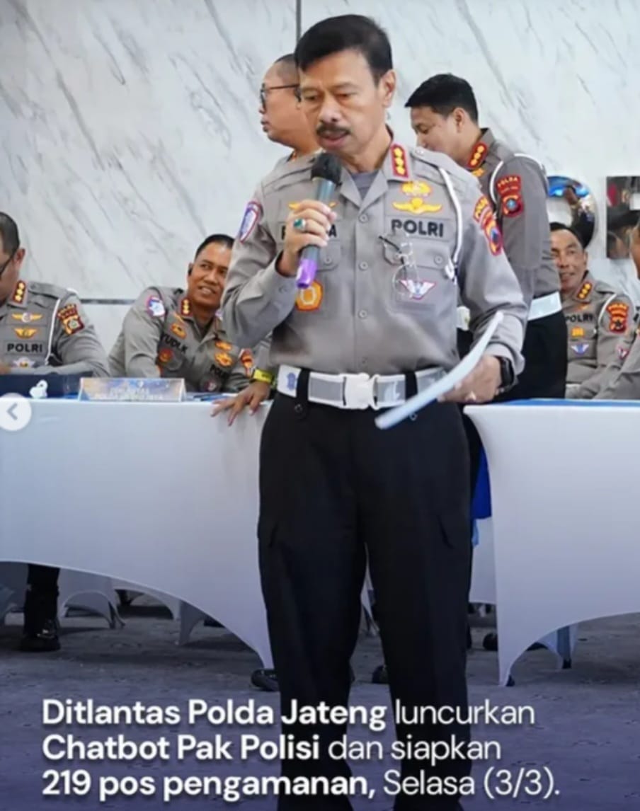 Direktorat Lalu Lintas (Ditlantas) Polda Jawa Tengah melakukan terobosan digital guna memanjakan para pemudik Lebaran 1447 Hijriah dengan meluncurkan inovasi Chatbot “Pak Polisi”. Layanan berbasis kecerdasan buatan ini dirancang untuk menjadi asisten virtual pribadi bagi pengendara agar perjalanan menuju kampung halaman bebas dari kendala tersesat atau terjebak kemacetan parah. Dengan fitur pemindaian kode batang (barcode) yang tersebar di titik-titik strategis, masyarakat dapat mengakses informasi rute alternatif secara real-time, estimasi jarak tempuh, hingga fitur berbagi lokasi (share loc) untuk memantau posisi terkini di sepanjang jalur mudik wilayah Jawa Tengah.