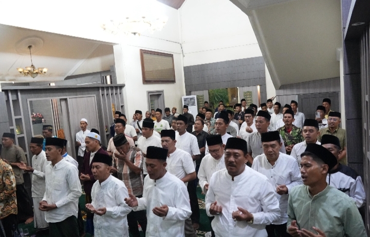 Suasana khidmat menyelimuti Rumah Dinas Bupati Lampung Timur pada Senin, 15 Desember 2025. Puluhan kader dan pengurus Partai Kebangkitan Bangsa (PKB) bersama tokoh masyarakat dan ulama menggelar tahlil dan doa bersama untuk mendoakan wafatnya almarhum Mbah KH Imam Nawawi, Mustasyar PCNU Lampung Timur masa khidmat 2025–2030 sekaligus pendiri dan pengasuh Pondok Pesantren Tadzibul Fuad, Desa Mumbang Jaya, Kecamatan Jabung, Kabupaten Lampung Timur.