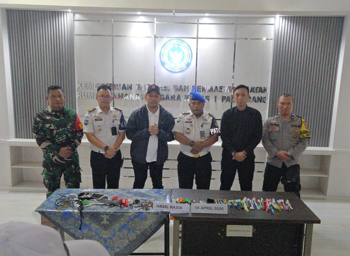 Dalam rangka memperkuat upaya pencegahan dan pemberantasan peredaran narkoba serta kepemilikan handphone ilegal, Rumah Tahanan Negara Kelas I Palembang melaksanakan razia terpadu bersama Tim Pengamanan Internal Kanwil, Satresnarkoba Polrestabes Palembang, unsur TNI melalui Babinsa, serta Polri melalui Bhabinkamtibmas, pada Sabtu (18/04/2026) malam.