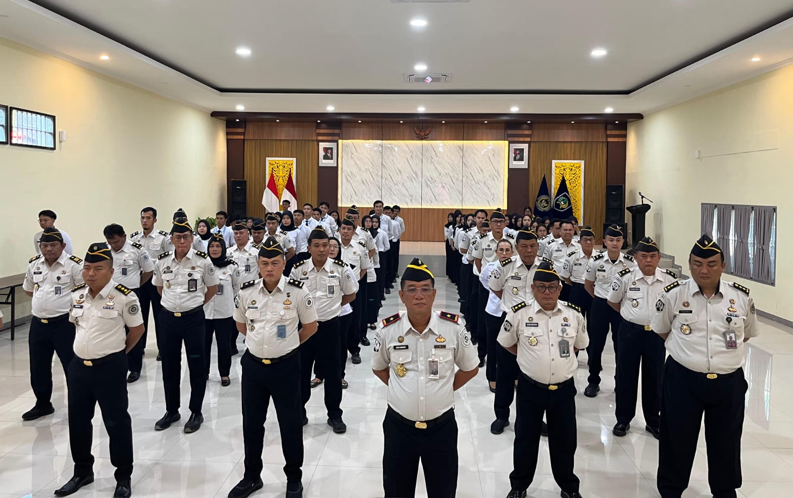 Lembaga Pemasyarakatan (Lapas) Kelas I Palembang mengikuti apel pagi bersama secara virtual di Aula Utama Lapas Palembang yang diselenggarakan di lingkungan Kementerian Koordinator Bidang Hukum, Hak Asasi Manusia, Imigrasi, dan Pemasyarakatan Republik Indonesia melalui aplikasi Zoom Meeting, Senin (12/01).