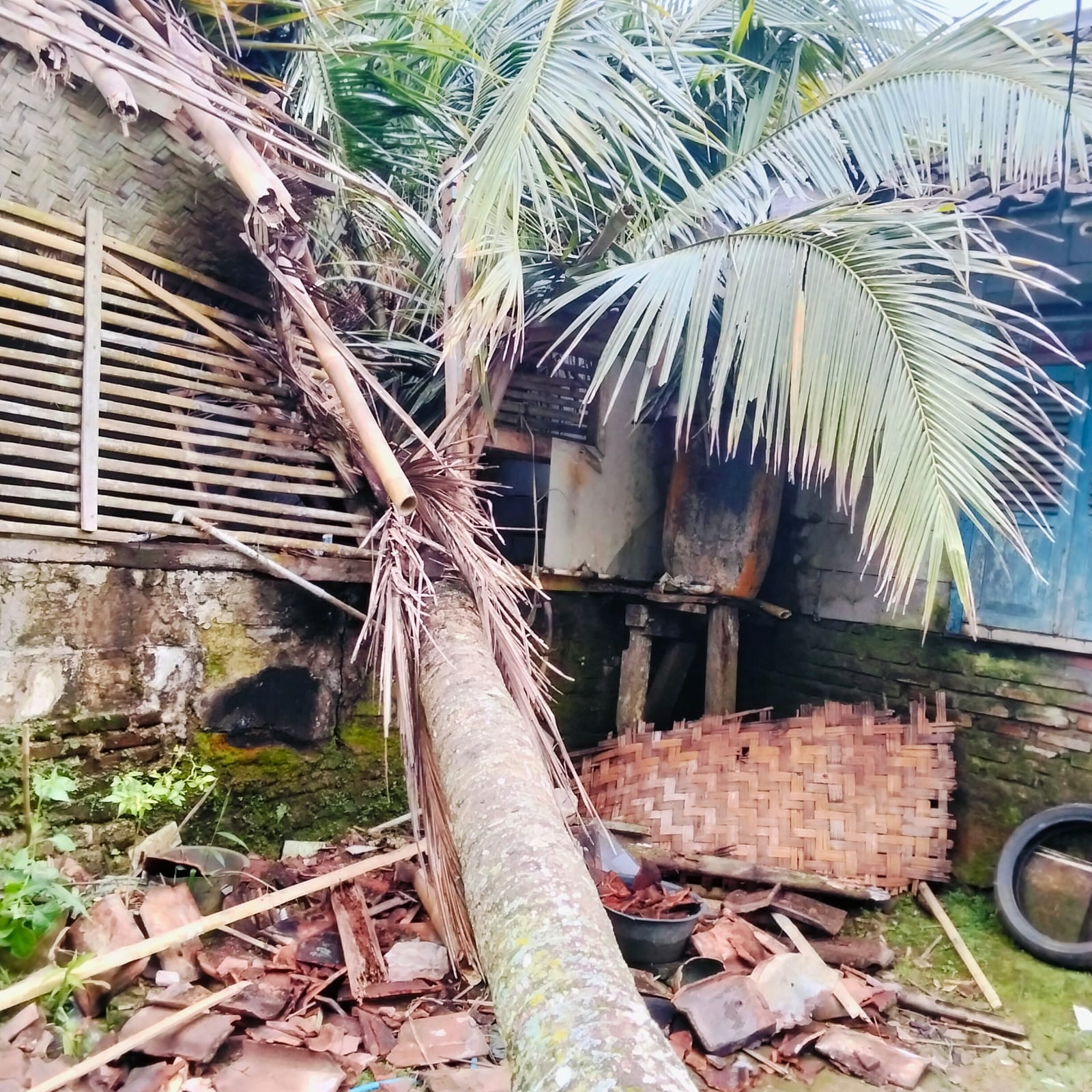 Udi menjelaskan, pohon kelapa menimpa bagian kamar mandi dan dapur, sementara kamar tidur berada tepat di samping area yang rusak.