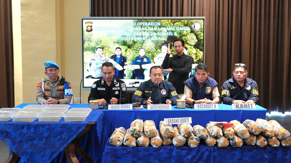 Pengungkapan tersebut disampaikan dalam konferensi pers yang digelar di Lounge Lantai 7 Gedung Presisi Mapolda Sumsel, Kamis, 30 April 2026. Operasi ini merupakan hasil joint operation antara Ditresnarkoba Polda Sumsel dan Satresnarkoba Polres Empat Lawang.