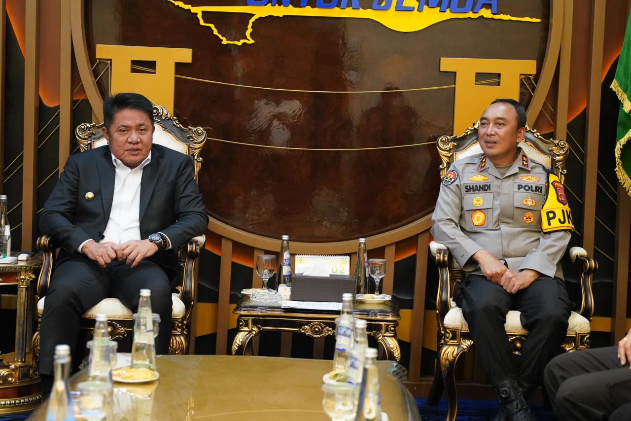 Gubernur Sumatera Selatan Dr. H. Herman Deru, S.H., M.H. menerima langsung Kapolda Sumsel bersama pejabat utama Polda Sumsel. Dalam pertemuan tersebut, kedua pihak membahas penguatan koordinasi lintas sektor guna menjaga stabilitas keamanan dan ketertiban masyarakat (kamtibmas) serta mendukung percepatan pembangunan daerah.