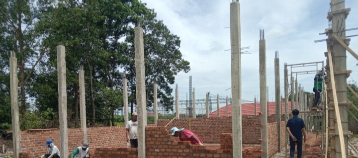 Situasi pengerjaan program vitalisasi pembangunan SMK N 1 Tegineneng, nampak pekerja tidak melengkapi Keamanan Keselamatan Kerja (K3)