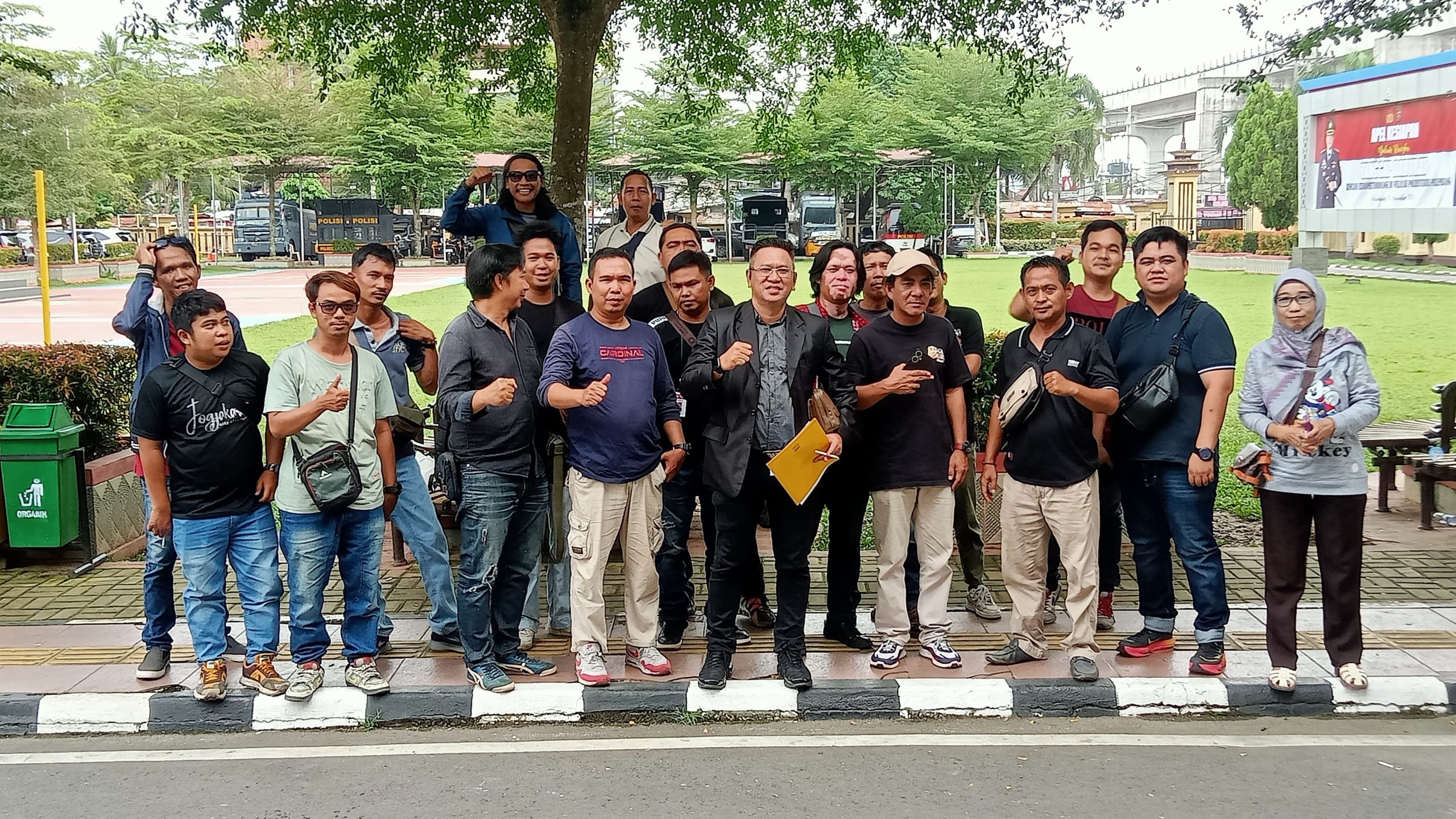 Puluhan wartawan online dan televisi mendatangi Sentral Pelayanan Kepolisian Terpadu (SPKT) Polrestabes Palembang, Rabu (19/11/2025), siang.