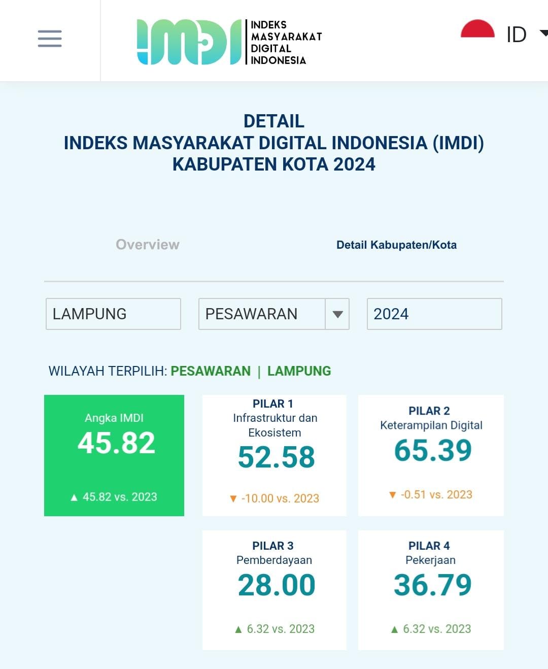 Sementara berdasarkan pengukuran IMDI secara nasional pada tahun 2024, capaian skor dari hasil survei di seluruh kabupaten/kota mencapai 43,34, Indeks ini naik 0,16 dari tahun 2023 dengan jumlah skor 43.18.
