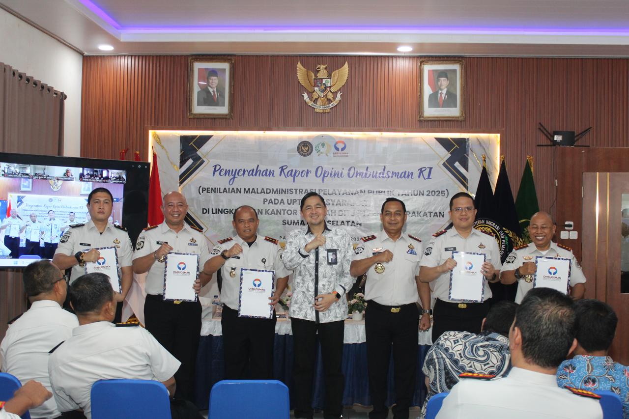 Lapas Kelas I Palembang menghadiri kegiatan penyerahan Rapor Opini Ombudsman Republik Indonesia yang diselenggarakan di Kantor Wilayah Direktorat Jenderal Pemasyarakatan Sumatera Selatan. Kegiatan ini menjadi momentum penting dalam penguatan kualitas pelayanan publik di lingkungan pemasyarakatan, sekaligus wujud komitmen Lapas Kelas I Palembang di bawah kepemimpinan Kepala Lapas Kelas I Palembang, M. Pithra Jaya Saragih, dalam meningkatkan standar layanan kepada masyarakat, Selasa (10/02/2026).