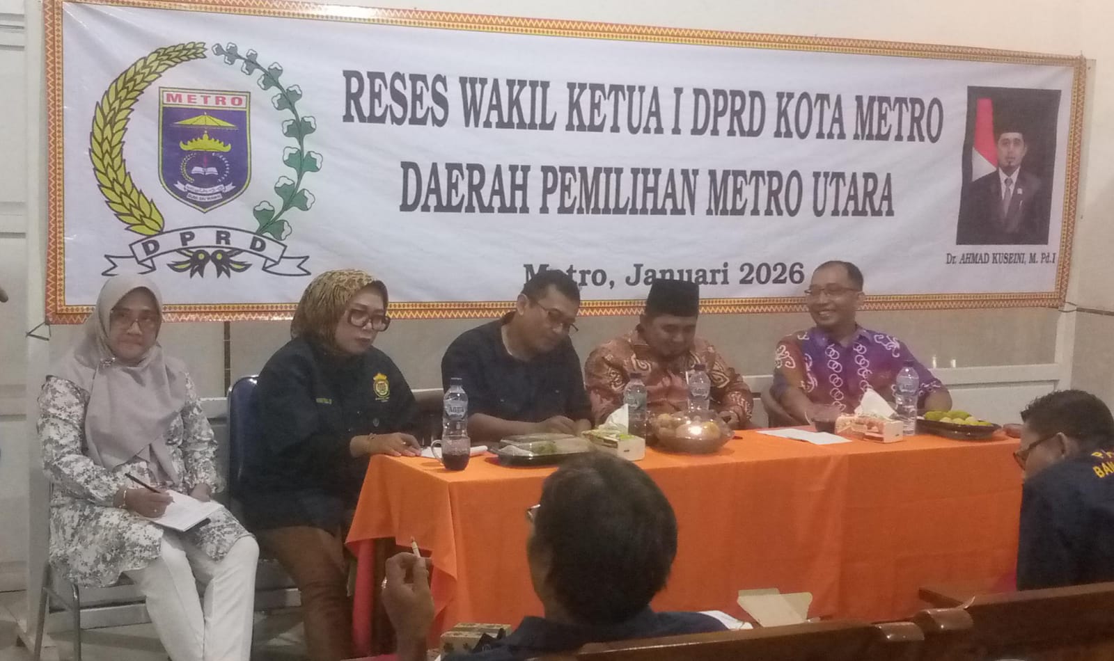 Reses Anggota Dewan Perwakilan Rakyat Daerah (DPRD) Kota Metro Ahmad Khuseini Wakil Ketua I Dewan Perwakilan Rakyat Daerah (DPRD) Kota Metro, yang berlangsung di Rumah Aspirasi Banjarsari, Kecamatan Metro Utara, Kota Metro, Sabtu Malam, (31/01/2026).