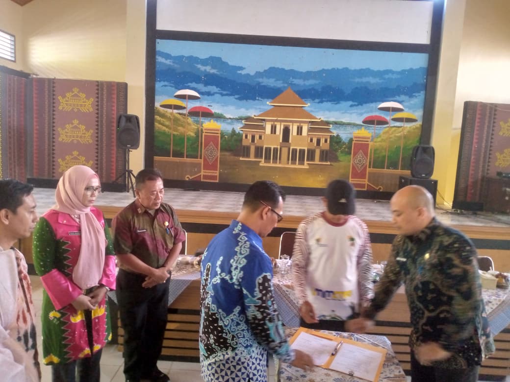 Momen Serah terima jabatan (Sertijab) dari Pelaksana tugas (Plt) Kadis Dikbud Dedy Hasmara kepada Kepala Dinas Pendidikan dan Kebudayaan (Disdikbud) Kota Metro yang baru, Agus Muhammad Septiana.