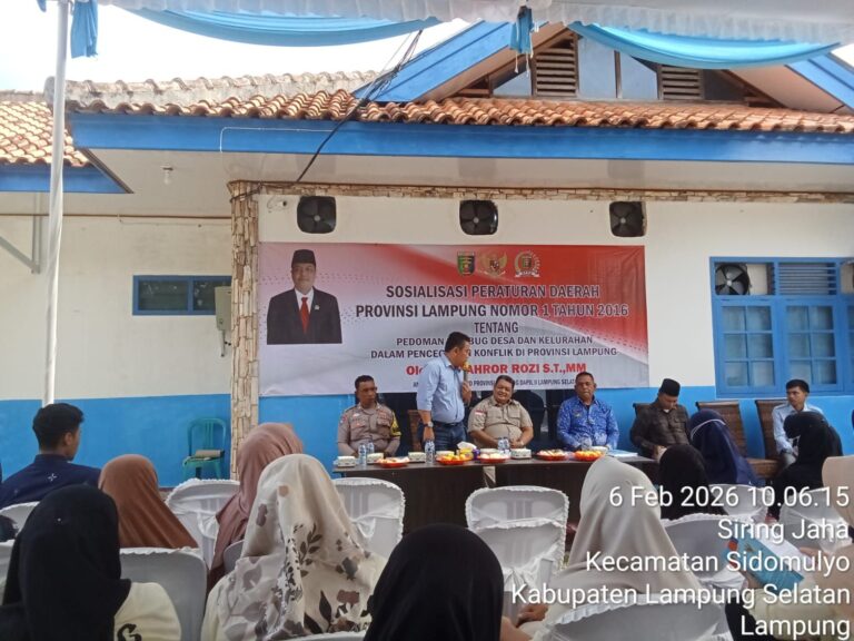 Sinergi antara legislatif, pemerintah desa, dan aparat keamanan kembali ditegaskan dalam kegiatan reses Anggota DPRD Provinsi Lampung yang digelar di Desa Siring Jaha, Kecamatan Sidomulyo, Kabupaten Lampung Selatan, Jumat (6/2/2026).