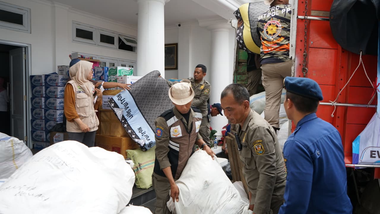 Proses pendistribusian bantuan melibatkan relawan kemanusiaan dari BPBD, Satpol PP, TNI, Polri, serta OPD terkait. Para relawan bekerja bahu membahu menyalurkan bantuan ke lokasi-lokasi yang jaraknya berjauhan dan memiliki medan yang tidak mudah.