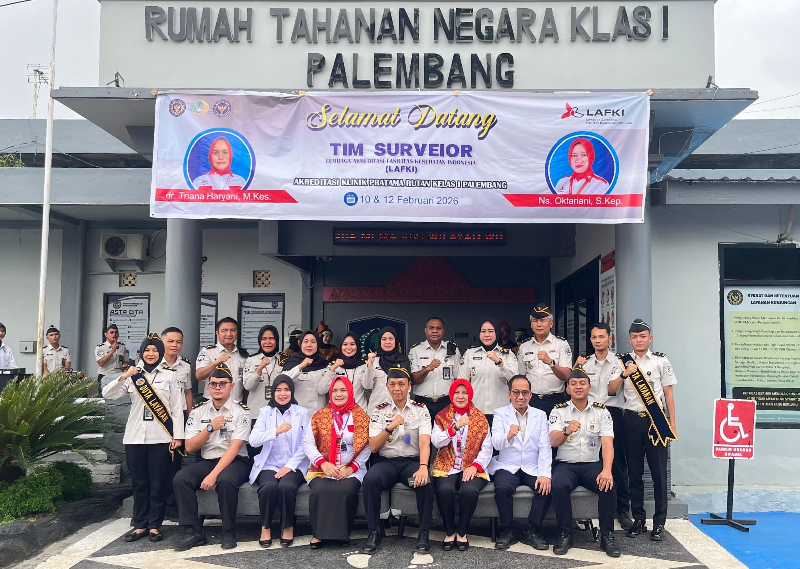 Rumah Tahanan Negara Kelas I Palembang menerima kunjungan Tim LAFKI dalam rangka pelaksanaan survei akreditasi klinik, Kamis (12/02/2026). Kegiatan yang dimulai pukul 07.30 WIB hingga selesai ini berlangsung di lingkungan Rutan Kelas I Palembang.